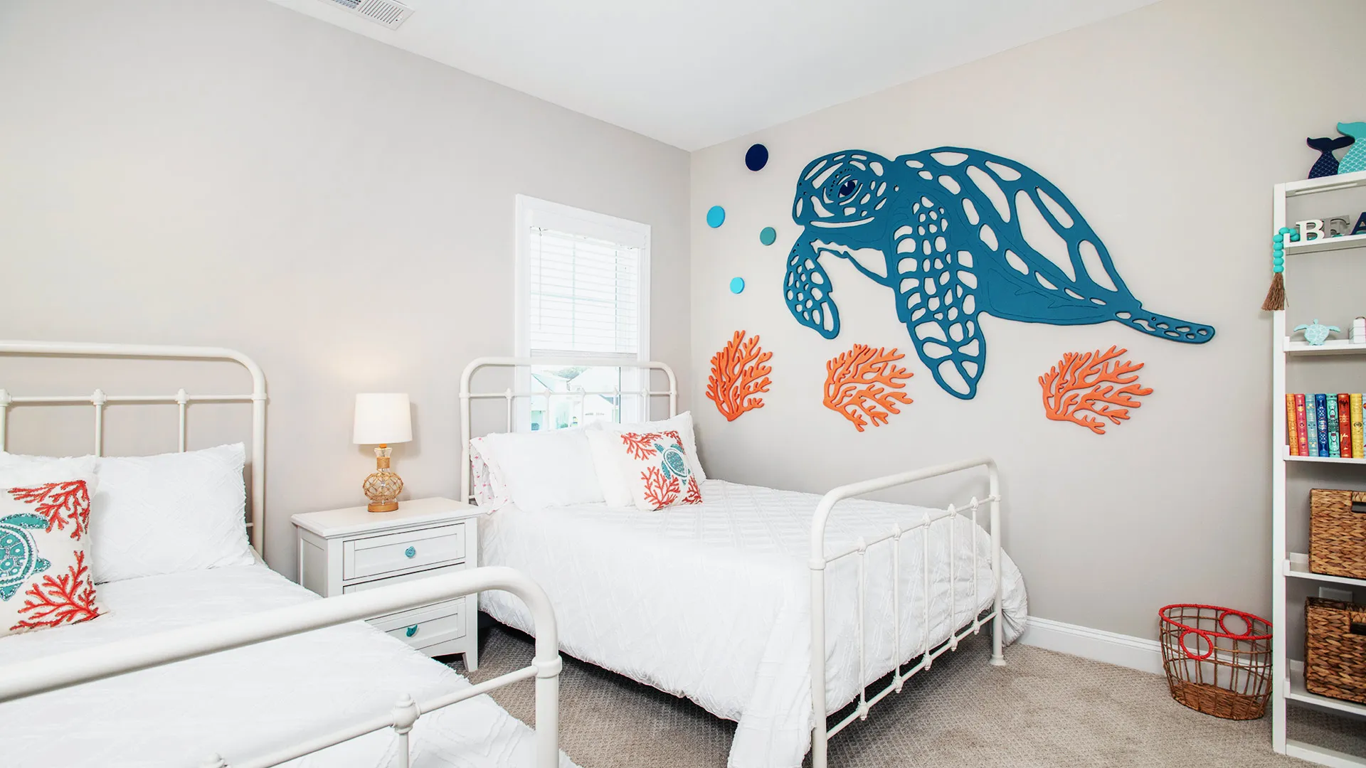The Primary Suite is located on the first floor and welcomes you with a CoSea coastal aesthetic. The Suite comes complete with a full en suite bathroom, double vanity, and walk-in closet. The room includes a king bed with an Avocado (Certified Non-Toxic, Organic) mattress and room-darkening shades. The perfect place to relax after a long day at the beach!