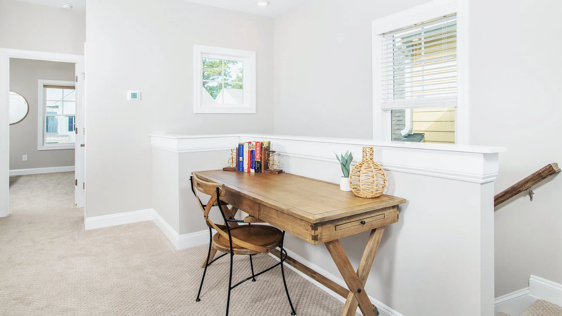 The second king bedroom is located upstairs. This bedroom is conveniently located adjacent to the upstairs bathroom. The room comes complete with a large closet and optional TV. Sunshine fills this room all day and includes room-darkening shades for your convenience at night. With the size and proximity to the bathroom, this king room easily doubles as a second Primary bedroom.